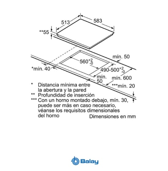 Encimera, Inducción, Encastrable, 60 cm, 3, Marco inoxidable, 60 cm, control táctil de fácil uso, 3 zonas, zona de 28 cm, marco de acero inox.