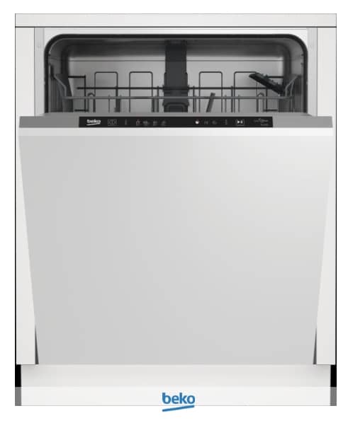 BDIN14320. Tipo de instalación: Completamente integrado, Talla del producto: Tamaño completo (60 cm), Tipo de control: Tocar. Número de cubiertos: 13 cubiertos, Nivel de ruido: 49 dB, Programas de lavado: Eco 50 °C, Higiene, Intensive 70°C, Mini 35°C, Rápido 60 °C. Clase de eficiencia de energía: E, Consumo de agua por ciclo de lavado: 12,9 L, Consumo de energía por 100 ciclos: 94 kWh. Ancho: 598 mm, Profundidad: 550 mm, Altura: 818 mm