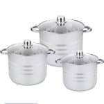 Experimente la excelencia culinaria con nuestro set de 3 Cacerolas Grandes Elite fabricadas con acero Inoxidable, incluye tapas. Este conjunto de cacerolas de alta calidad está diseñado para satisfacer las necesidades de cualquier cocinero, desde familias numerosas hasta cocineros profesionales.