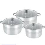 CACEROLAS ELITE, BATERIA DE COCINA 3 CACEROLAS BAJAS CON TAPAS DE ACERO INOXIDABLE 26/28/30 CM. 6/8/9 LITROS | COMPATIBLE CON GAS, VITRO E INDUCCIÓN | LIBRE DE PFOA.