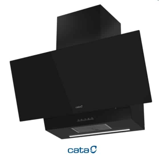 Campana decorativa vertical de pared de 90cm con acabado en cristal negro. Panel de Control Táctil con temporizador de desconexión automática e indicador de limpieza de filtros. 6 niveles de extracción, 5 + 1 TURBO. Capacidad de extracción máxima – mínima (Reg.(UE) nº65/2014): 842m3/h – 200m3/h. Nivel sonoro (Reg.(UE) nº65/2014): 46dB(A), máximo: 64dB(A). Motor Brushless. Extra silencioso. Consumo máximo de energía 135W. Iluminación mediante LEDs regulables en intensidad. Función purificación de