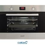 Horno multifunción de 45cm con acabado en inox, Display digital con 8 funciones y programación de tiempo y de temperatura y mandos PushPull escamoteables, 40litros de capacidad y 1 guía telescópica adaptable a cualquier nivel. 4 niveles para colocación de bandejas de fácil desplazamiento. Puerta panorámica full glass. Puerta fría 3 cristales con ventilación tangencial. Accesorios: Bandeja profunda y parrilla. Sistema de limpieza AquaSmart. 220/240V 50/60Hz. Clase de eficiencia energética: A