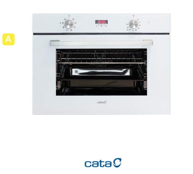 Horno multifunción de 45cm con acabado en cristal blanco, Display digital con 8 funciones y programación de tiempo y de temperatura y mandos PushPull escamoteables, 40 litros de capacidad y 1 guía telescópica adaptable a cualquier nivel. 4 niveles para colocación de bandejas de fácil desplazamiento. Puerta panorámica full glass. Puerta fría 3 cristales con ventilación tangencial. Accesorios: Bandeja profunda y parrilla. Sistema de limpieza AquaSmart. Clase de eficiencia energética: A