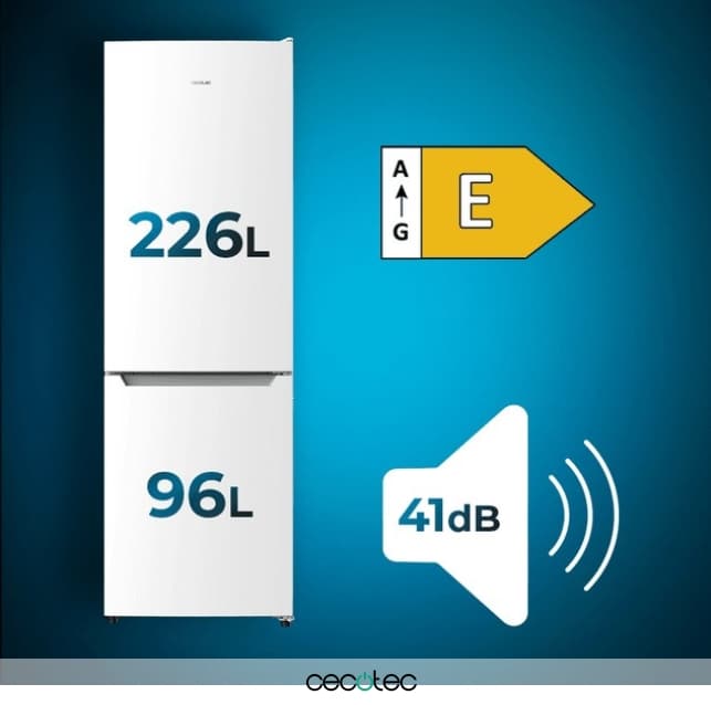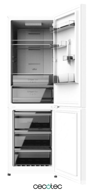 Combi con Capacidad 322 L. Multi Airflow. Total No Frost. Humidity/Crisper box, LED interior, Puerta reversible, Alarma de puerta, Control de temperatura. Color blanco Clasifición energética E. Ancho 59 /Fondo 63,5 /Alto 185,5cm