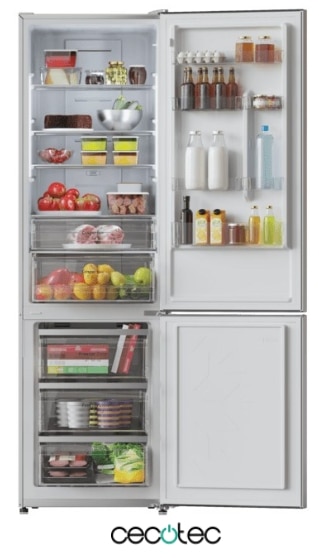 Combi con Capacidad 322 L. Multi Airflow. Total No Frost. Humidity/Crisper box, LED interior, Puerta reversible, Alarma de puerta, Control de temperatura. Color cristal blanco Clasifición energética E. Ancho 59 /Fondo 63,5 /Alto 185,5cm