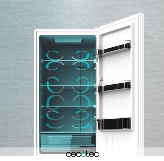 Combi con Capacidad 250 L. Multi Airflow. Total No Frost. Humidity/Crisper box, LED interior, Puerta reversible, Alarma de puerta, Control de, Inverter Plus. Color blanco Clasifición energética D. Ancho 54 /Fondo 59 /Alto 180cm