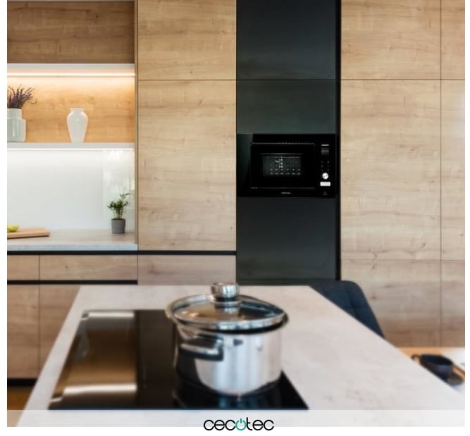 Microondas Encastrable Digital GrandHeat 2090 Built-in Touch Black. 800 W, Integrable, 20 Litros, 8 Funciones, Panel Táctil, Inicio Automático, Temporizador, Negro