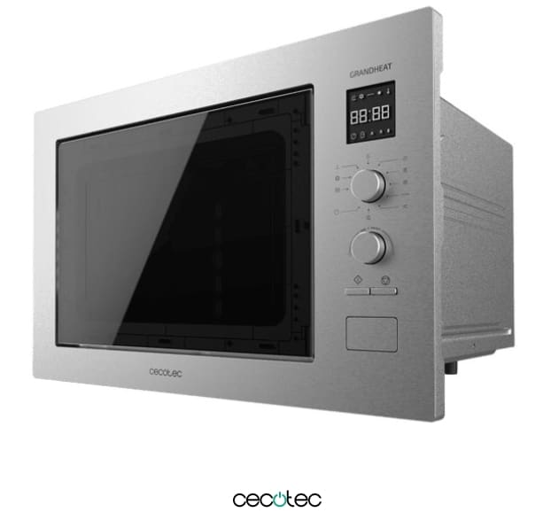 Microondas Encrastable Digital de 25 Litros con Grill GrandHeat 2550 Built-In Steel. 1320 W, 8 Funciones, Temporizador, Revestimiento Acero Inox, Plato Giratorio de 31,50cm