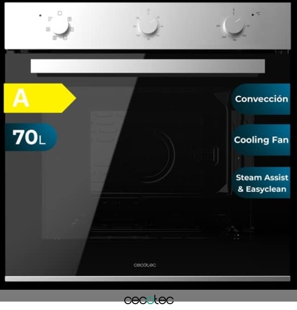 Horno Integrable Multifunción M236000 Line Time de 70L de capacidad, 6 funciones, Timer, Clase A, 2800W, Steam Base XXL, Steam Assist, Steam EasyClean, Cooling Fan, Modo Defrost, Modo Eco, Modo Convección, Puerta Triple Glass.