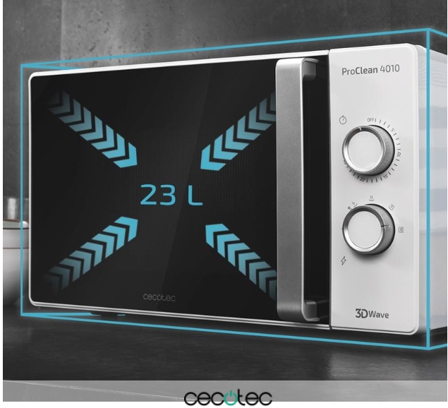 Microondas 23l ProClean 4010. Capacidad de 23l, Revestimiento Ready2Clean, 700 W de Potencia, 6 Niveles Funcionamiento, Temporizador 30 min, Modo Descongelar, Acabado Blanco.