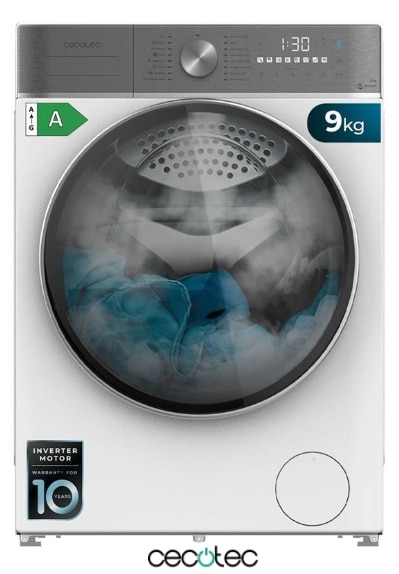 Lavadora de carga frontal de 9 kg de capacidad, Clase A, 1400 rpm, 16 programas, Motor Inverter Plus, SteamMax, lavado inteligente, detector de carga y Display XXL. Color Blanco. Ancho 60 /Fondo 57,7 /Alto 84,7cm Bolero DressCode 9800 Inverter A