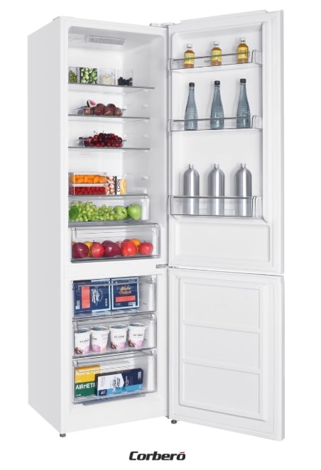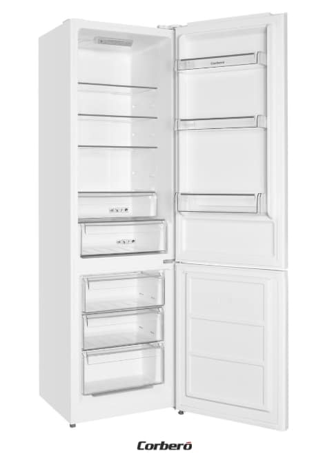 Frigorífico Combi 2 puertas, Capacidad 326L, No Frost, Blanco, Inverter, Silver Trim, Luz LED, Fresh Box, Crisper, Balcones Ajustables, Estantes de Cristal, Huevera, 39 Db, Eficiencia Energética D, 2010 x 600 x 605 mm