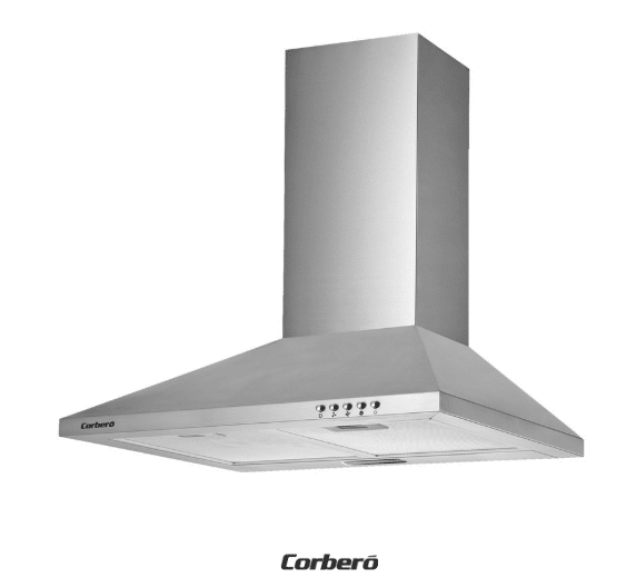Campana Decorativa Pirámide Inox, 60 cm, Caudal 350 m3/h, 65W, 3 Velocidades, Filtro Aluminio 3 Capas, Filtro Carbon, Eficiencia Energética B, 465 X 600 X 180 mm