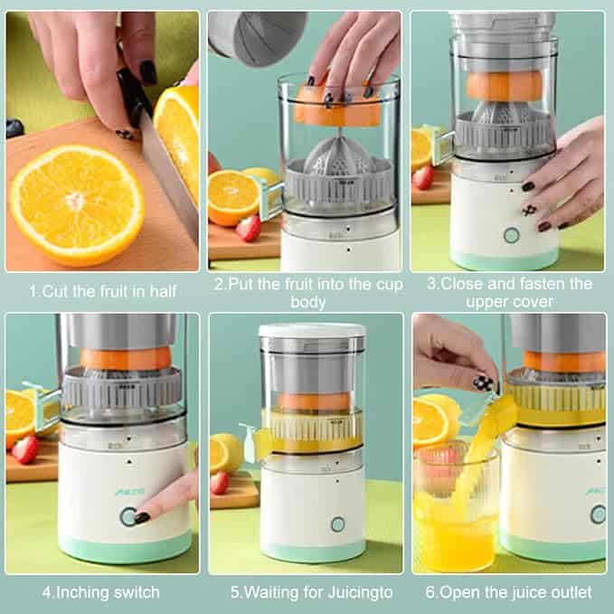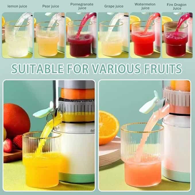 - 🍋【Exprimidor automático de naranjas】Este exprimidor eléctrico puede exprimir el jugo en todas las direcciones 360 grados, sin necesidad de cambiar la cubierta del cono para una fruta específica, además, mantendrá la fruta en su lugar y ayudará a evitar que se apriete desordenadamente. ¡El exprimidor es perfecto para hacer múltiples jugos de manera consistente para una variedad de frutas, incluidos limones, naranjas, granadas, uvas, manzanas, sandías, kiwi y más!