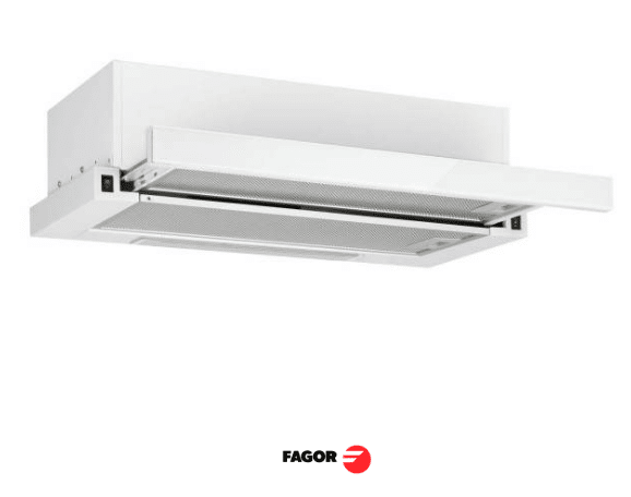 Campana telescópica | 60 cm | Blanca | Cuerpo Bajo | Mandos Mecánicos | 3 Niveles de Extracción | 2 Filtros de Aluminio | 1 puntos de Iluminación LED | Potencia de extracción 270 m³/h | Nivel Sonoro Max: 65 dB | Clase Energética C