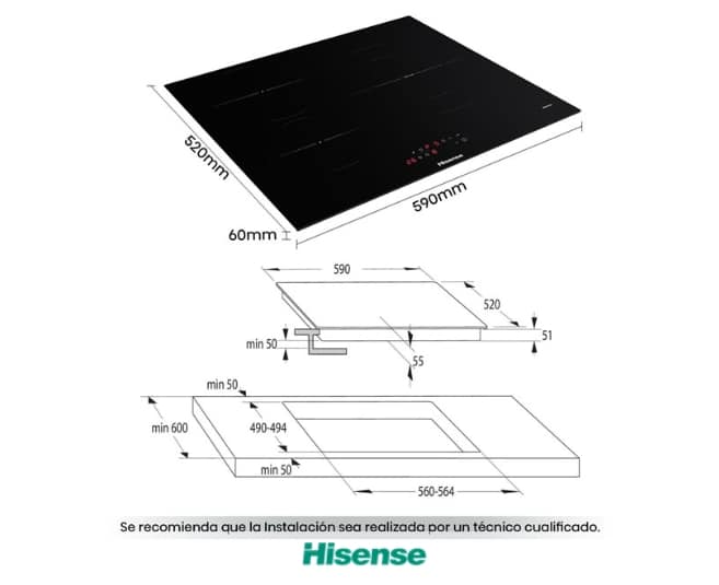 Placa Induccion, 3 Zonas , Capacidad 7100W, Color Cristal Negro | ALTO 6cm x ANCHO 59cm x FONDO 52cm. Zona Grande 32cm Calentamiento Rápido. Programa Pausa. Temporizador. Bloqueo Infantil. Indicador Calor Residual .Diseño de Borde Biselado.
