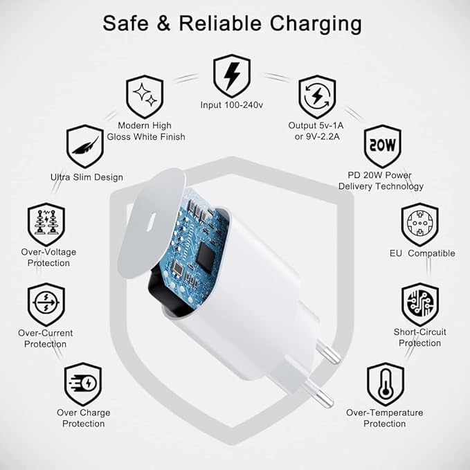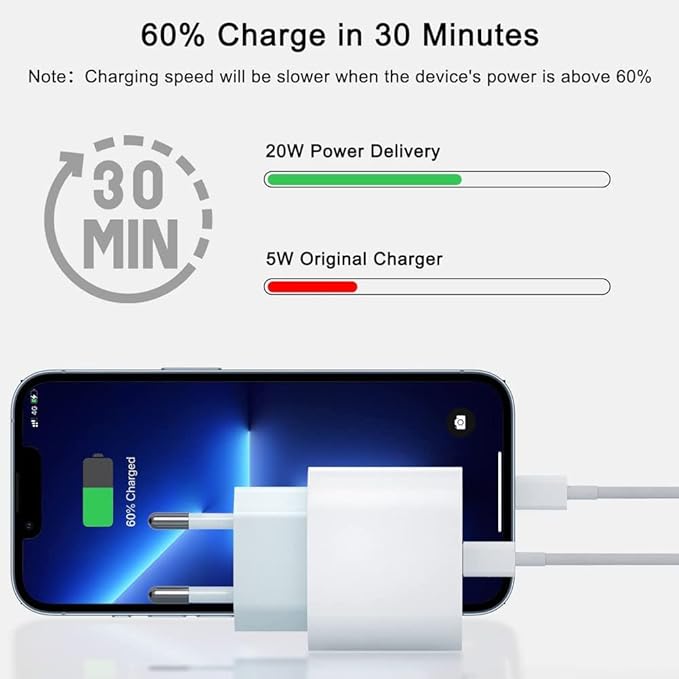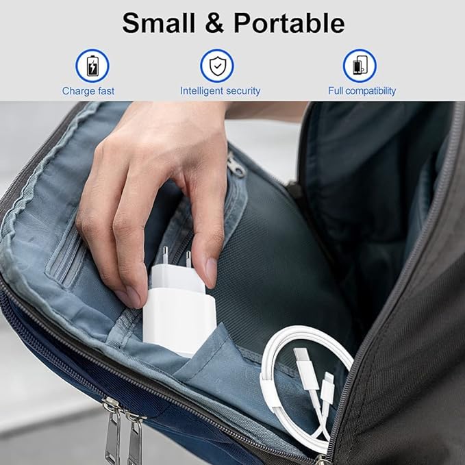 • Cargador rápido Usb C para iPhone ?Certificado por Apple Mfi? Cargador de enchufe de pared Pd 3.0 de carga rápida de 20 W Adaptador de corriente con cable Usb C a Lightning de 2M para Iphone 13 Pro / 12 Mini / 11Pro / Se / Xs Max / 8 / Ipad
