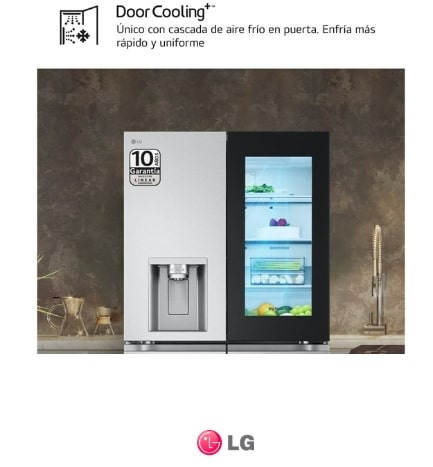 InstaView GMG961EVKE. Tipo de instalación: Independiente, Diseño de producto: Puerta americana, Color del producto: Negro, Acero inoxidable. Capacidad neta total: 637 L, Clase climática: T, Clase de emisión de ruido: C. Frigorífico, capacidad neta: 363 L, Tipo de lámpara: LED. Congelador, capacidad neta: 274 L, Posición congelada: último lugar, Capacidad de congelación: 11,2 kg/24h. Aplicaciones de control compatibles: LG ThinQ
