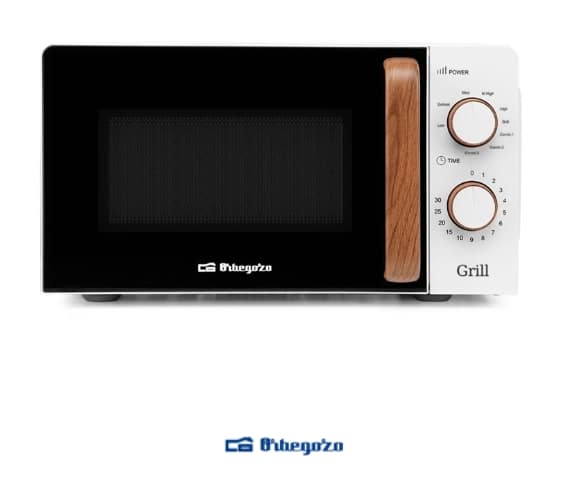 Microondas diseño nordico 700W. Grill 900W. Capacidad 20L. Asa de madera. 5 niveles de potencia.Funcion grill con resistencias de cuarzo. 3 funcioens combinadas grill- mircroondas. Incluye regilla para funcion grill. Temporaizador de hasta 30 min. Programa de descongelacion. Señal de fin de coccion. Puerta con cierrre de seguridad. Dimensiones externas: 446 x 243 x 361 mm . Peso bruto 11,9kg. CONEXIÓN 230V~50HZ