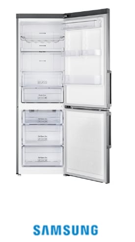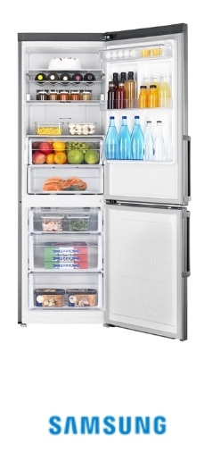RB33J3315SA. Capacidad neta total: 339 L. Bisagra para puerta: Derecho. Clase climática: SN-T, Nivel de ruido: 37 dB. Frigorífico, capacidad neta: 231 L, Antiescarcha (nevera), Sistema multi-flujo de aire (nevera), Luz interior de la nevera, Frigorífico, número de compartimentos: 4. Congelador, capacidad neta: 108 L, Capacidad de congelación: 13 kg/24h, Antiescarcha (congelador). Clase de eficiencia de energía: E, Consumo de energía anual: 253 kWh. Color del producto: Metálico