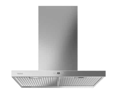Campana decorativa de pared con temporizador y 4 velocidades de extracción, Inox, Clase A, 900 x 480 x 670-1000 mm, Mandos electrónicos retroiluminados con display blanco Barra de iluminación LED Tres velocidades + intensiva Indicador digital de velocidad seleccionada Programador del tiempo de aspiración Filtros metálicos decorativos inox Indicador luminoso de saturación de filtros Motor de doble turbina EcoPower Capacidades de extracción: min.305 m3/h – int.735 m3/h Potencia sonora: m