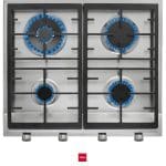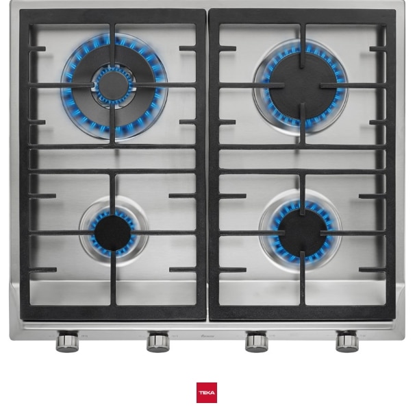 Placa de cocción a gas (butano/propano o natural). Mandos frontales metalizados incorporados con frente negro. Seguridad por termopar integrada en quemador individual. Autoencendido integrado en quemador y accionado por cada mando. Quemadores de alta eficiencia. 50x58x33