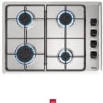Placa de coción a gas natural, 4 fuegos, 1 quemador rápido 3kw seguirdad termopar, parrillas esmaltadas, color Acero inox. Dimensión: 85x600x435