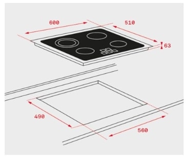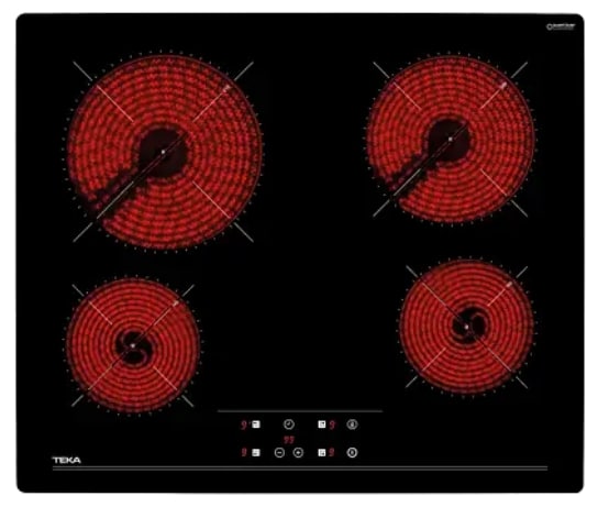 Vitrocerámica de 60 cm con 4 zonas con Touch Control, 4 zonas (Ø145 mm + Ø145 mm + Ø180 mm + Ø210 mm), Función golpe de cocción, Función cronómetro con avisador acústico, Sistema fácil instalación Fast-Click, 51x600x510