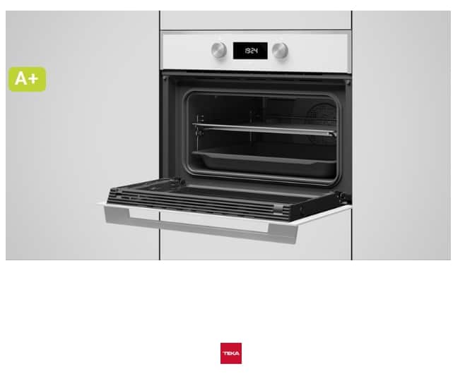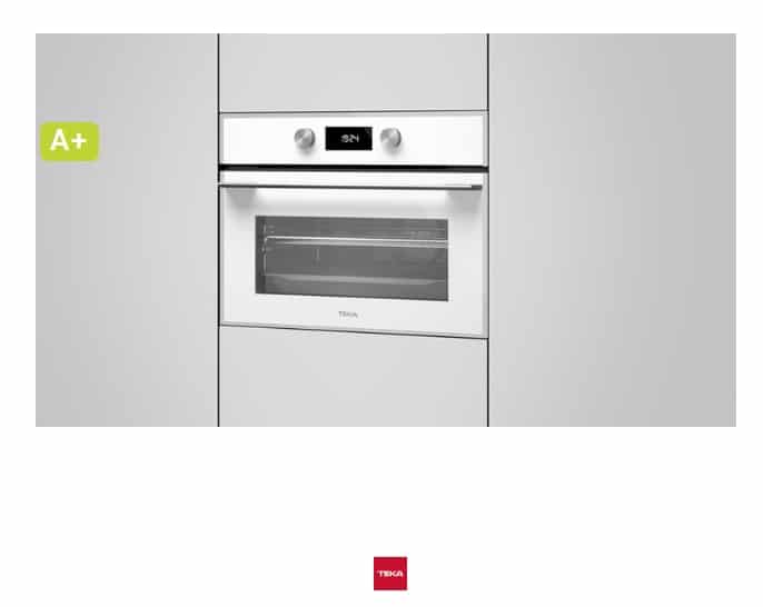 Horno compacto Multifunción de 45 cm con Hydroclean® PRO y 9 funciones de cocinado, Touch Control con programación de inicio y paro de cocción, Tres alturas de cocinado, Puerta tres cristales, 44L, Cristal Blanco. 455x595x537