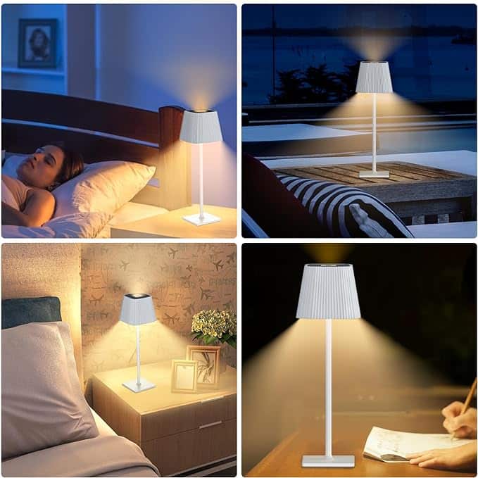 • Mayor capacidad de batería: este modelo de lámpara de mesa inalámbrica está equipado con una batería recargable de 4800 mAh respetuosa con el medio ambiente y de bajo consumo. Se puede cargar completamente en solo 4 horas a través de USB-C y puede durar hasta 12 horas en modo de baja intensidad de luz.