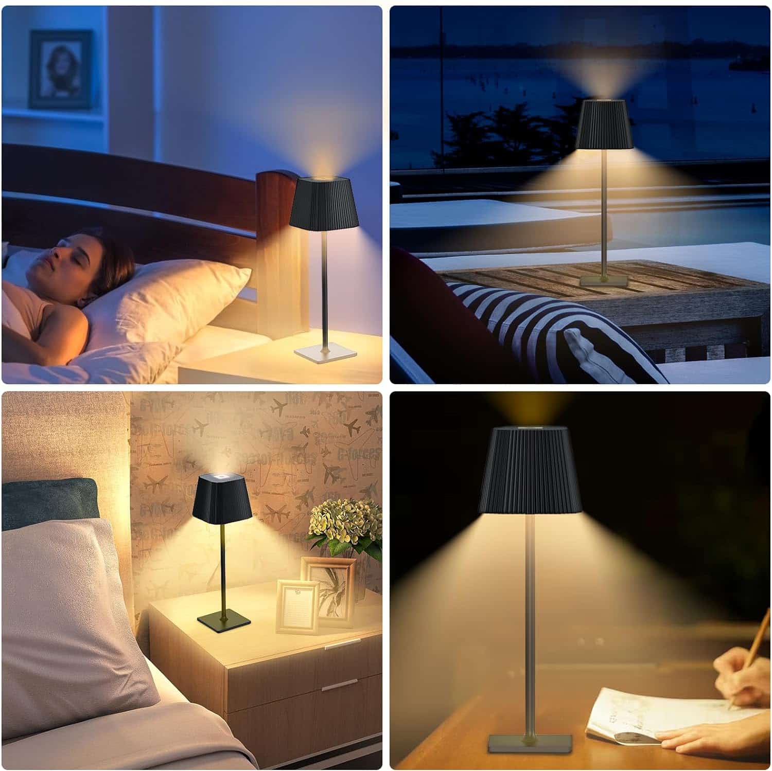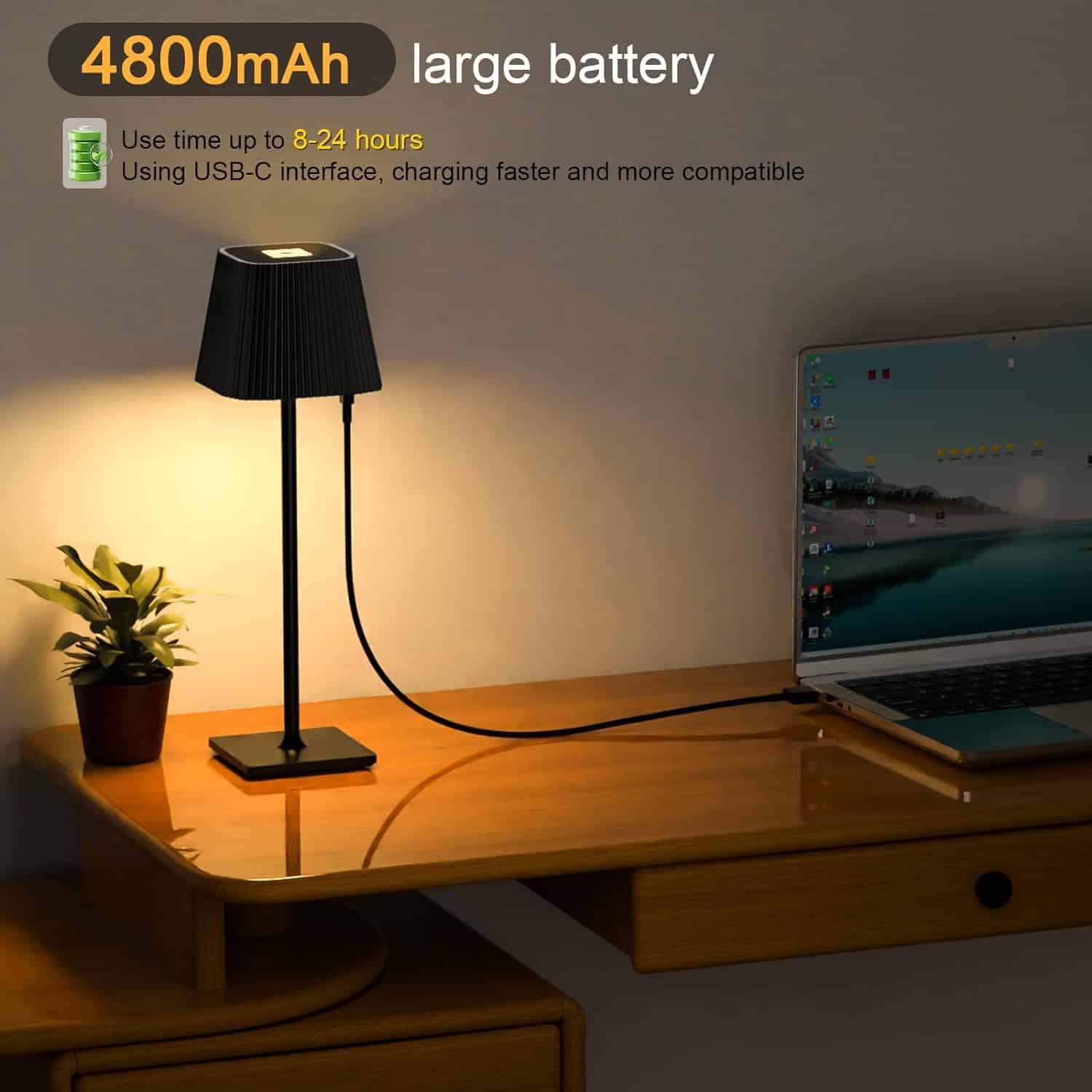 • Mayor capacidad de batería: este modelo de lámpara de mesa inalámbrica está equipado con una batería recargable de 4800 mAh respetuosa con el medio ambiente y de bajo consumo. Se puede cargar completamente en solo 4 horas a través de USB-C y puede durar hasta 12 horas en modo de baja intensidad de luz.